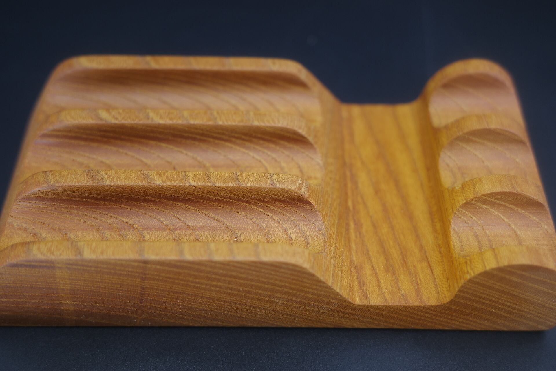 無垢材の美しい木目をしっかりと楽しむことができる重厚感、直線と曲線と合わせ持ったスタイリッシュなデザイン。