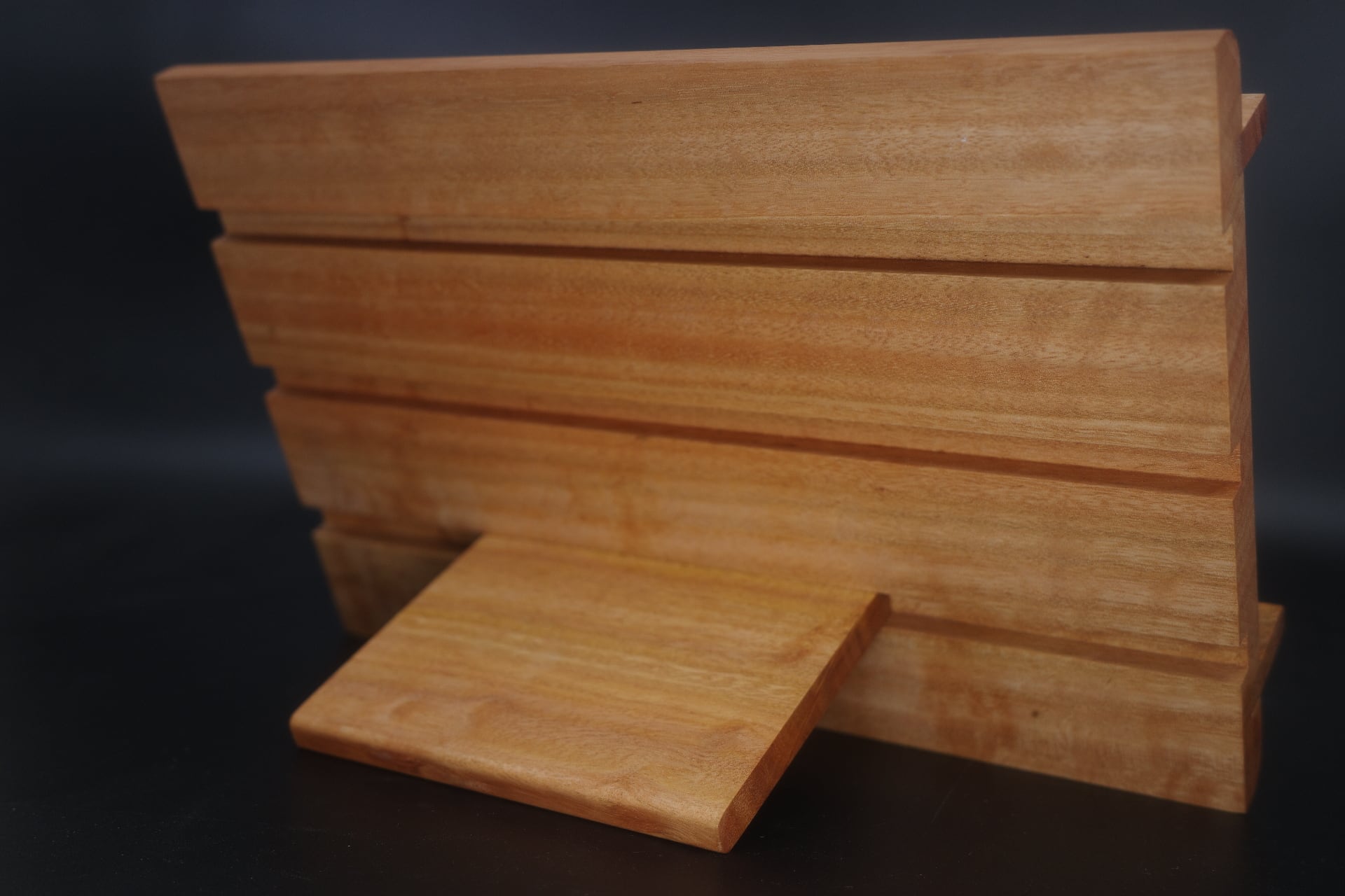 背面の溝に支え板をはめ込み角度を変えることができます。