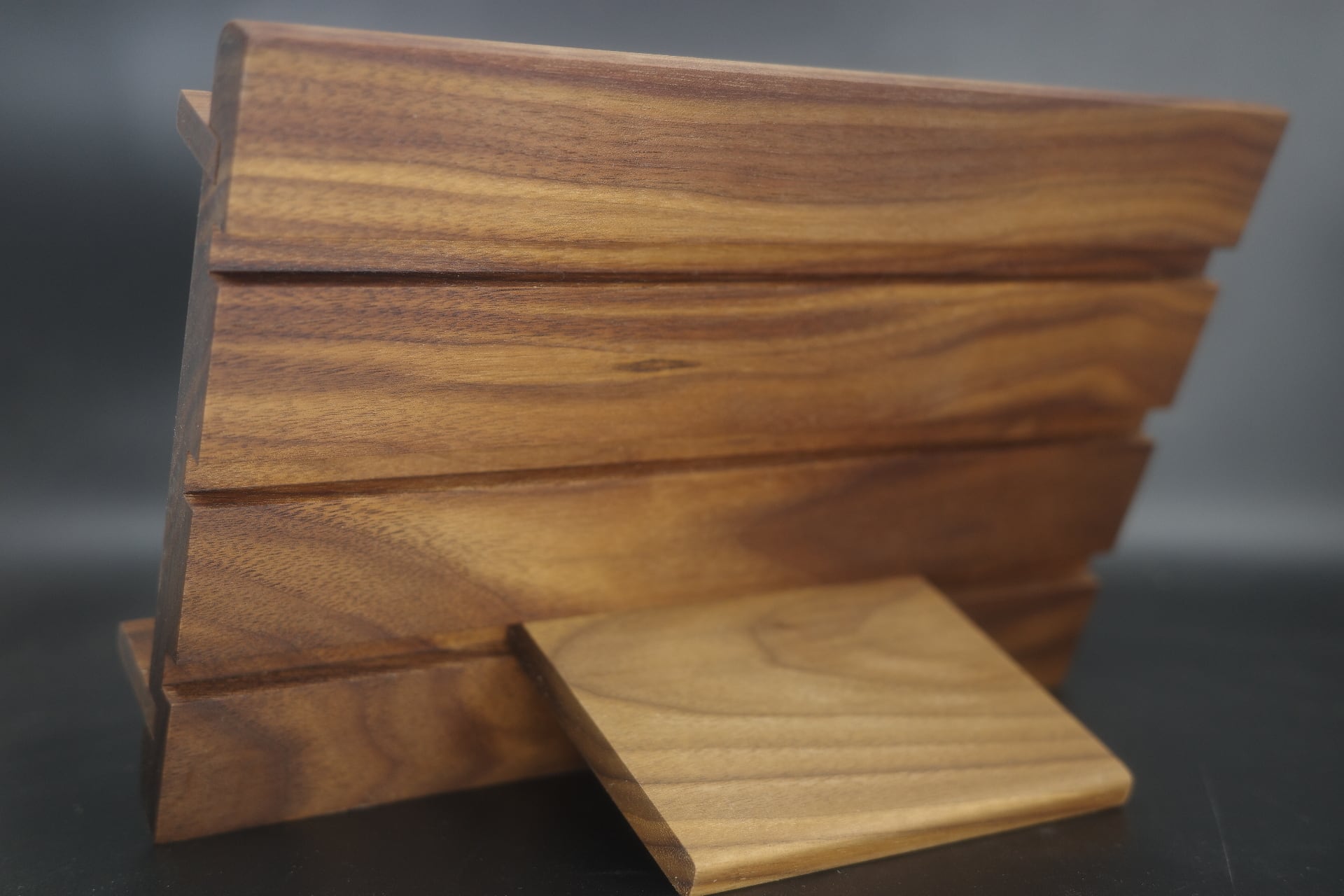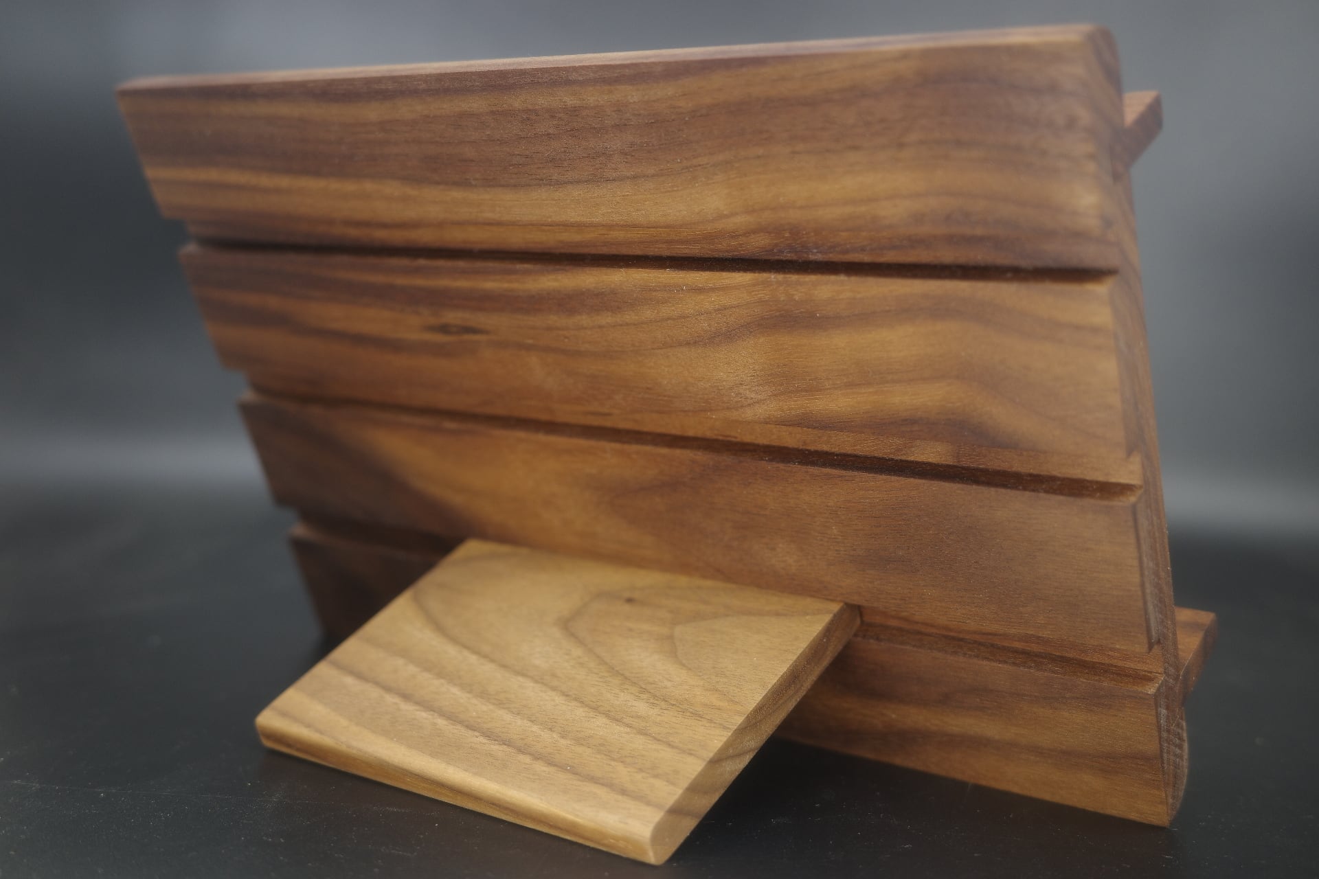 背面の溝に支え板をはめ込み角度を変えることができます。