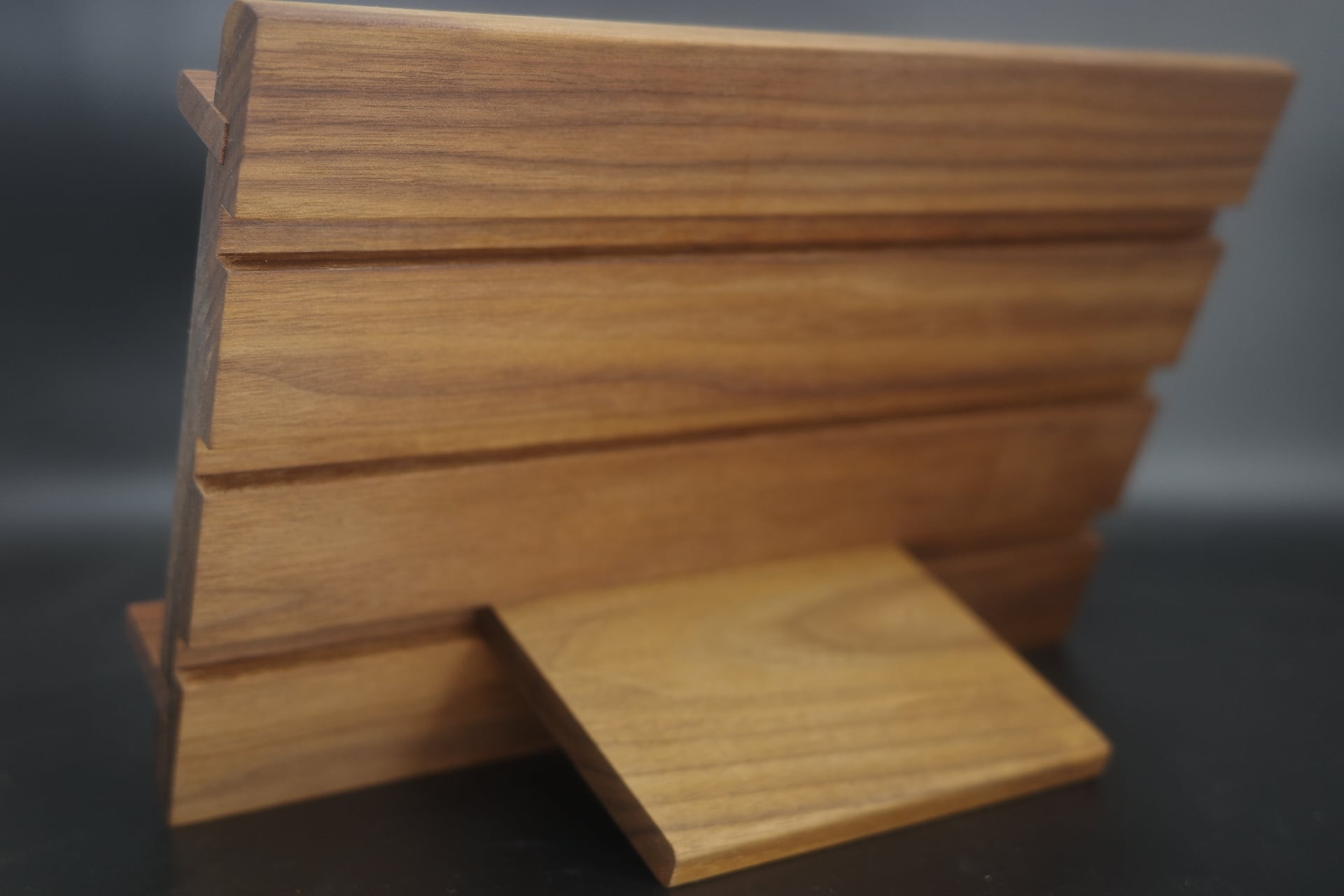 背面の溝に支え板をはめ込み角度を変えることができます。